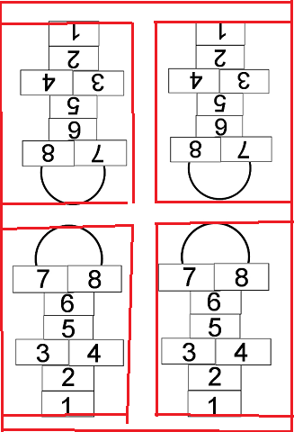 (1) 愛樂奇打算用廣告塑膠止滑大型帆布印刷跳房子的圖案擺在地上,然後每四張併成一個"過五關的場地(如上圖)
