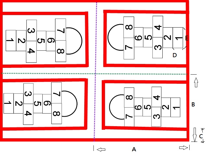 1.請建議如上圖的過五關場地的一半寬度(A長度)應為?公分